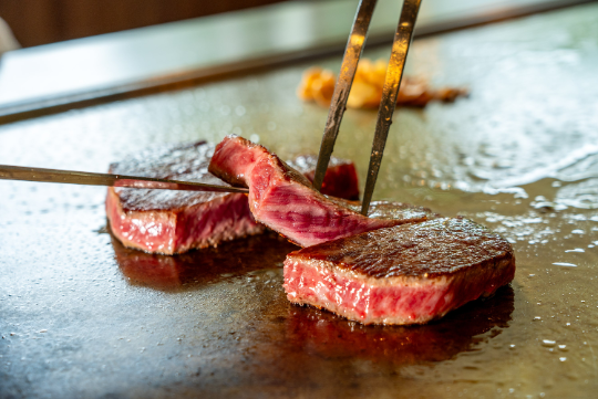 黒毛和牛や旬の食材を鉄板で焼き上げる香りと音、そしてワインが織りなす至福のハーモニーを、臨場感あふれる『カウンター席』でお楽しみください。