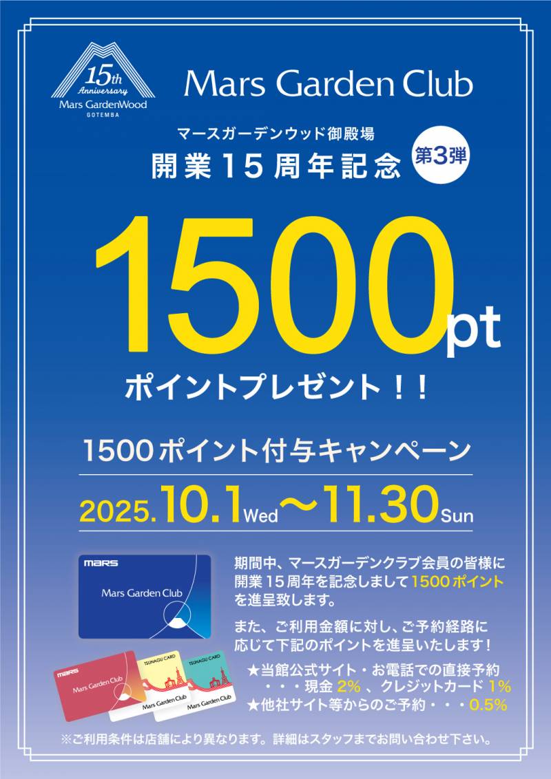 新規会員様・既存会員様皆様にマースガーデンポイント1500ptプレゼントいたします。