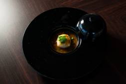 黄柚子の香りがふわりと広がるごま豆腐に、濃厚なウニを添えて。