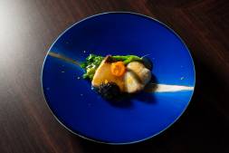 かぼちゃのポタージュでほっと温まり、魚料理は寒鰤と冬野菜を和風餡で包み込む、季節ならではの逸品。さらに、活伊勢海老の鉄板焼きは自家製タルタルソースで香ばしく。