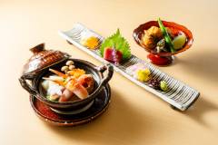 その出汁を基本に、旬の厳選素材を使用した会席料理をご提供いたします。