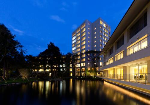 夜はライトアップされた庭園と「富士山噴水ショー」が、幻想的なひとときを演出します。