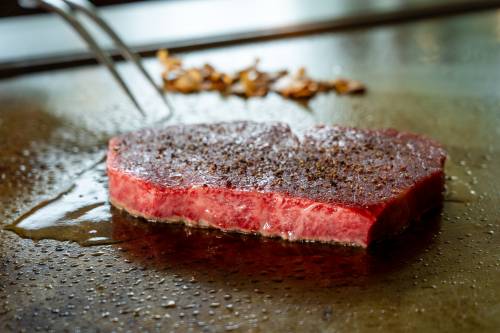 黒毛和牛に強い拘りがあるのは、その豊かな旨み、芳しい香り、とろける食感、それこそが鉄板焼ステーキの一番重要な部分だと思うからです。